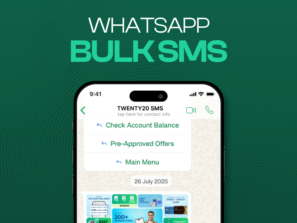 TWENTY20 SMS is a leading SMS API and cloud telephony provider with 9+ years of experience, trusted by businesses across India for reliable, innovative, and easy-to-use bulk SMS solutions.